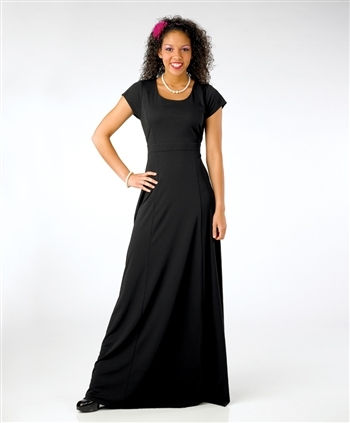 Black ankle length dress (Fall/Winter- long sleeves, Spring/Summer- short sleeves), black tights, black dress shoes